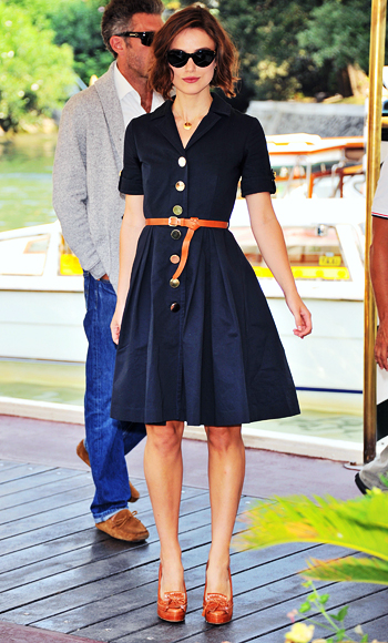 Keira Knightly in an Orla Kiely dress (Resort 2012), Ralph Lauren sunglasses & Tabitha Simmons loafers at the Venice Film Festival.