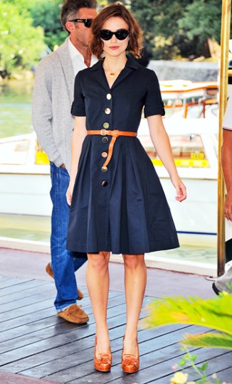 Keira Knightly in an Orla Kiely dress (Resort 2012), Ralph Lauren sunglasses & Tabitha Simmons loafers at the Venice Film Festival.