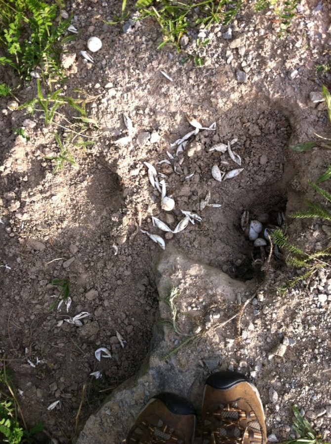 Image | Posted on June 21, 2013 by aslin kirkpatrick No signs of wildlife this evening other than the snapping turtles egg shells Share this: Click to share on X (Opens in new window) X Click to share on Facebook (Opens in new window) Facebook Like Loading... Related